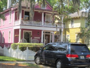 My initial ride was to be the twelve or so miles to Tom’s house in Ortega Forest, on the southwest part of town. I had been coached that the northern part of Jacksonville was somehow sketchy, dangerous. Stepping into the early morning steam heat, I rode off down a mostly vacant four lane highway. I guess to save time and money, Amtrak put the train station far from downtown, far from really anything, next to a large rail switchyard in northern Jacksonville. This Saturday morning there were few cars on the road., If there had been anything to be afraid of, I did not slow down long enough to know. I got to downtown in about forty minutes.