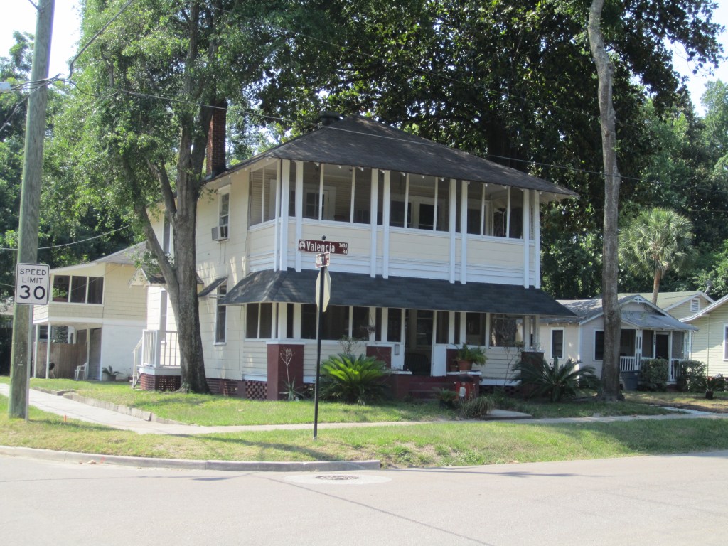 The ride through older neighborhoods south of downtown is more upbeat. There are miles of wooden early twentieth century houses, most surrounded by live oaks with Spanish moss and palms. Because of its grid street system, the older parts of Jacksonville make for safe and relaxing bicycling. In its physical layout, Jacksonville spreads over inland estuaries, much like Norfolk or Portsmouth. There are lots of bridges. Jacksonville has a fine collection of live oak trees, maybe even nicer trees than New Orleans.