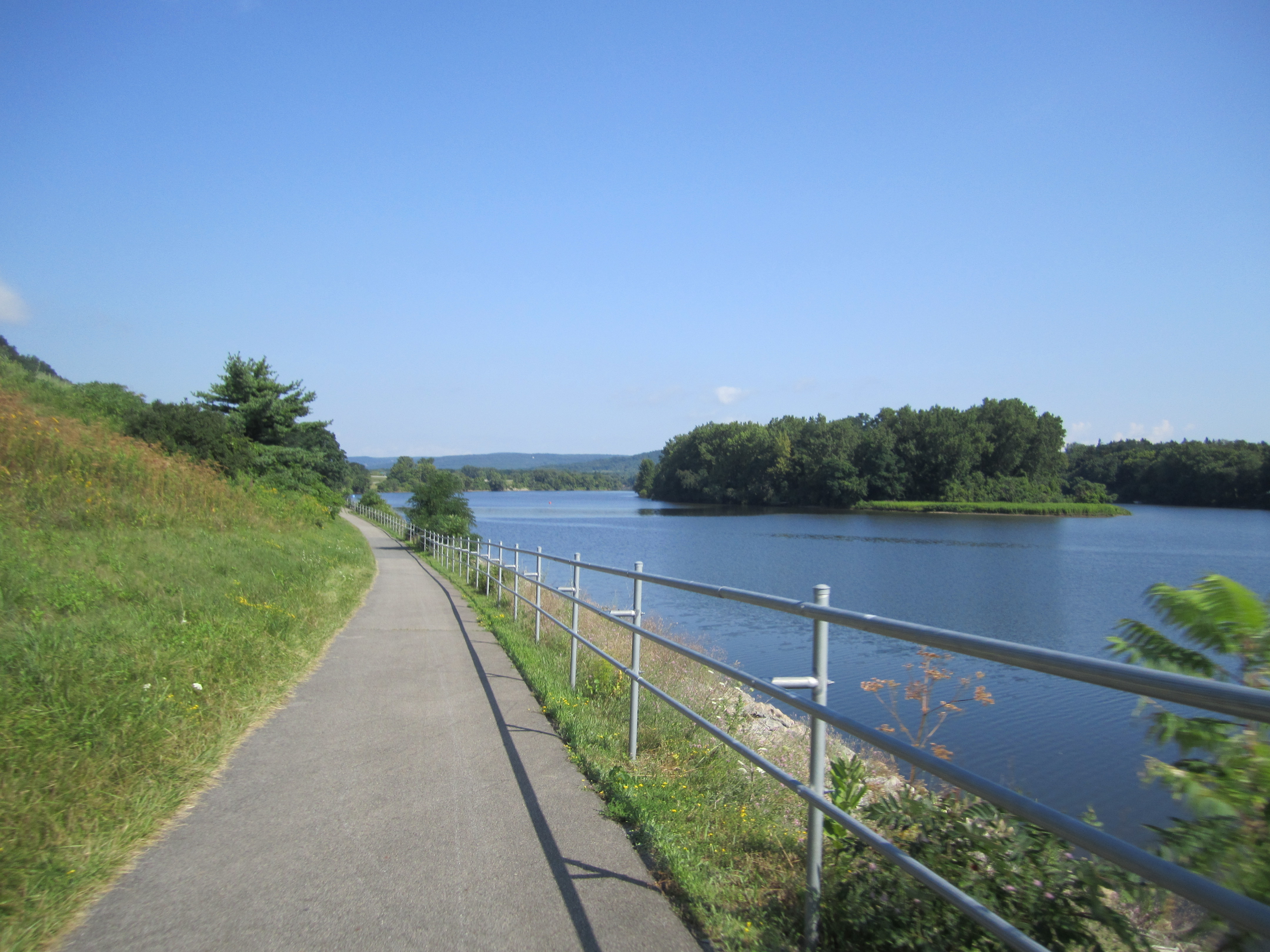 People in upstate New York actually appreciate summer. They come out to the bike path, the street, the park, thrilled not be shut up inside. In North Carolina, people sit inside in the summer, hiding from the oppressive humid steambath. In Albany, the crowds come outside, basking in the heat and sun. On my arrival afternoon in Albany, there was an outdoor concert on the Riverfront and the locals were out in force. After leaving the concert riding towards Cohoes and then Schenectady, one can feel the greenness envelope you, despite the roar of the New York State Thruway. Wild flowers seem much more vivid. Because summers are so brief, plant life seems rich and sweet and short.