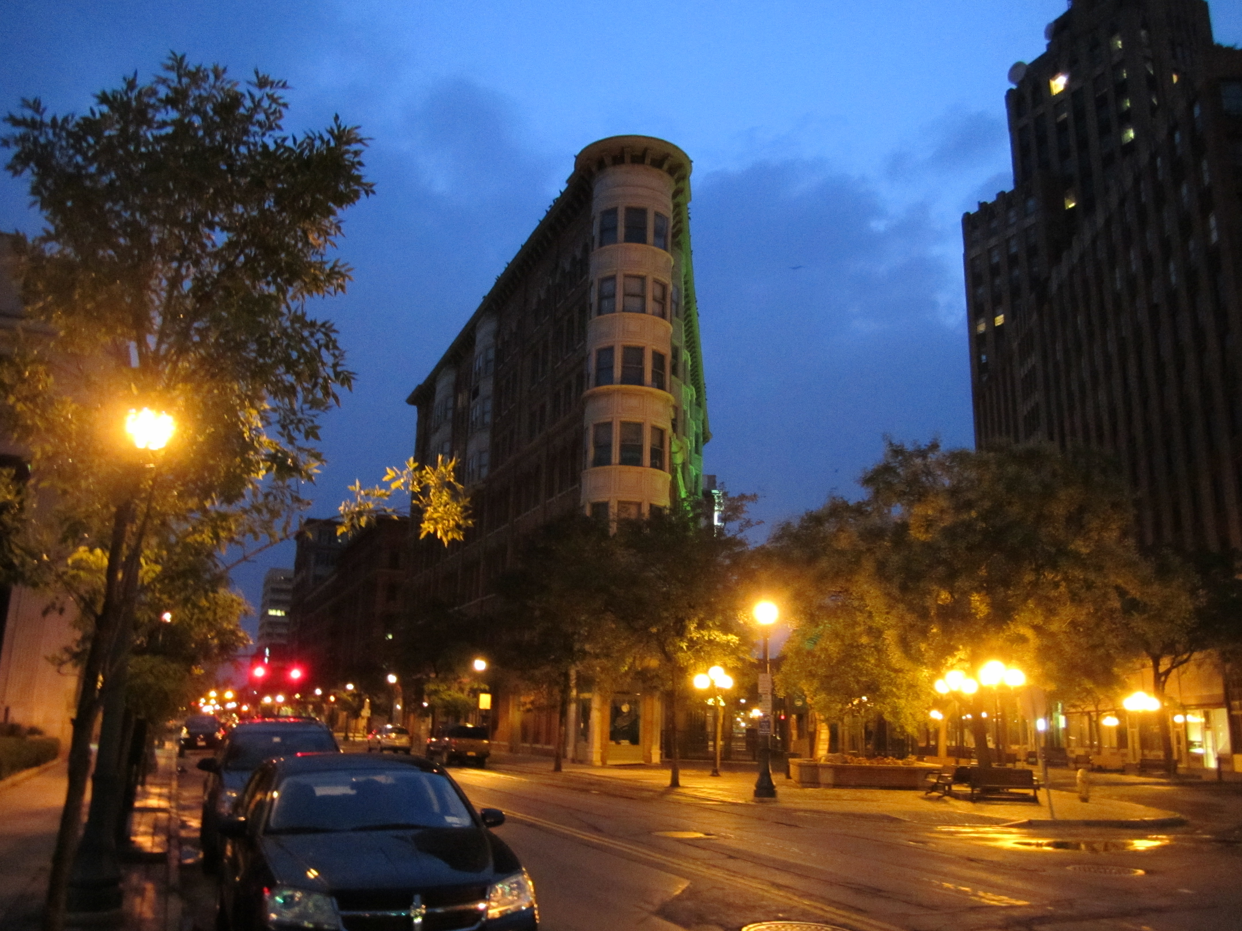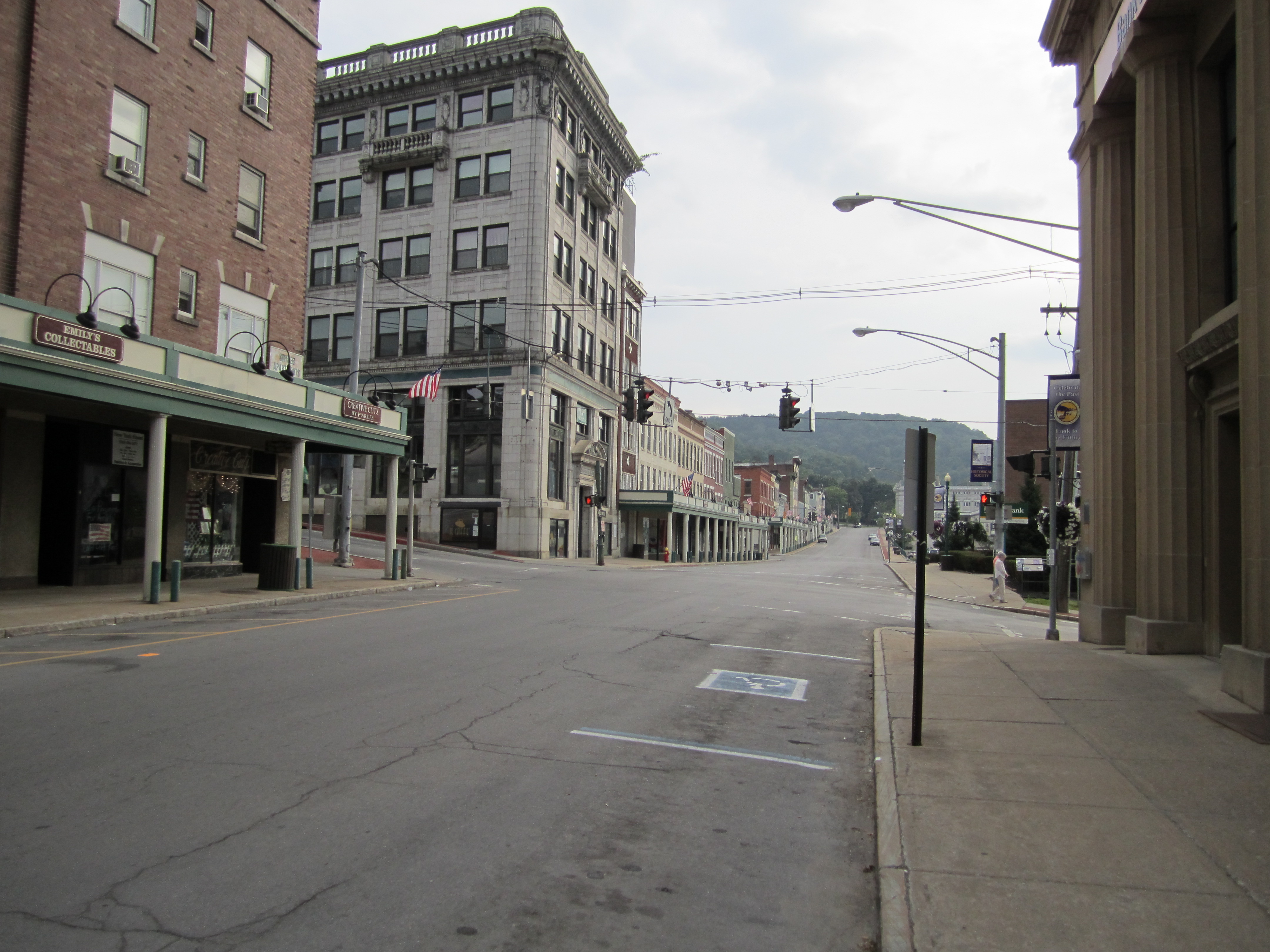 Syracuse is a mixed bag. It is larger than the aforementioned places, and has certain areas that are intact and lively. It has a huge stock of early twentieth century industrial buildings. Certain suburbs like Fayetteville look prosperous, almost rich. As you are riding through Syracuse suburbs through properous strip malls, the prosperity stops exactly at the city limits.