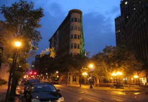 Albany and Schenectady, compared to cities later in the trip, do not seem so depressed. I guess that is due to government spending. Spending the night in downtown Schenectady, it seemed to be coming back alive despite General Electric layoffs. Betsy says that General Electric “declared war” on Schenectady some thirty years ago, reducing the number of employees in Schenectady from about sixty thousand to about fifteen hundred., even while this giant corporation had been very profitable. Schenectady was the first of several cities that had an “Erie Blvd”, which was the former Erie Canal turned into an unattractive downtown highway.