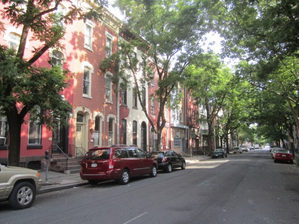 I arrived Reading about 7:30 PM Saturday. It is very much a faded place. Some parts seemed scary. The city is now majority Hispanic. Those new immigrants have saved part of the city, but nothing appears very prosperous. Some parts of the city are really beautiful, although this block is not as prosperous as it looks.