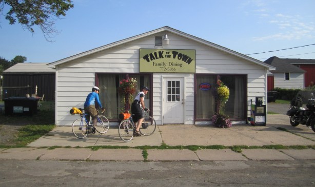 We rode about 190 miles in five days, Buffalo to Rochester to Syracuse, old industrial cities along the old Erie Canal. The Erie Canal authority does a good job of maintaining a bike path on this route. Since the Erie Canal has been rebuilt several times in sections, the path moves around. Most of it follows the current canal, but in other places it follows abandoned canals, or country roads and former rail lines.