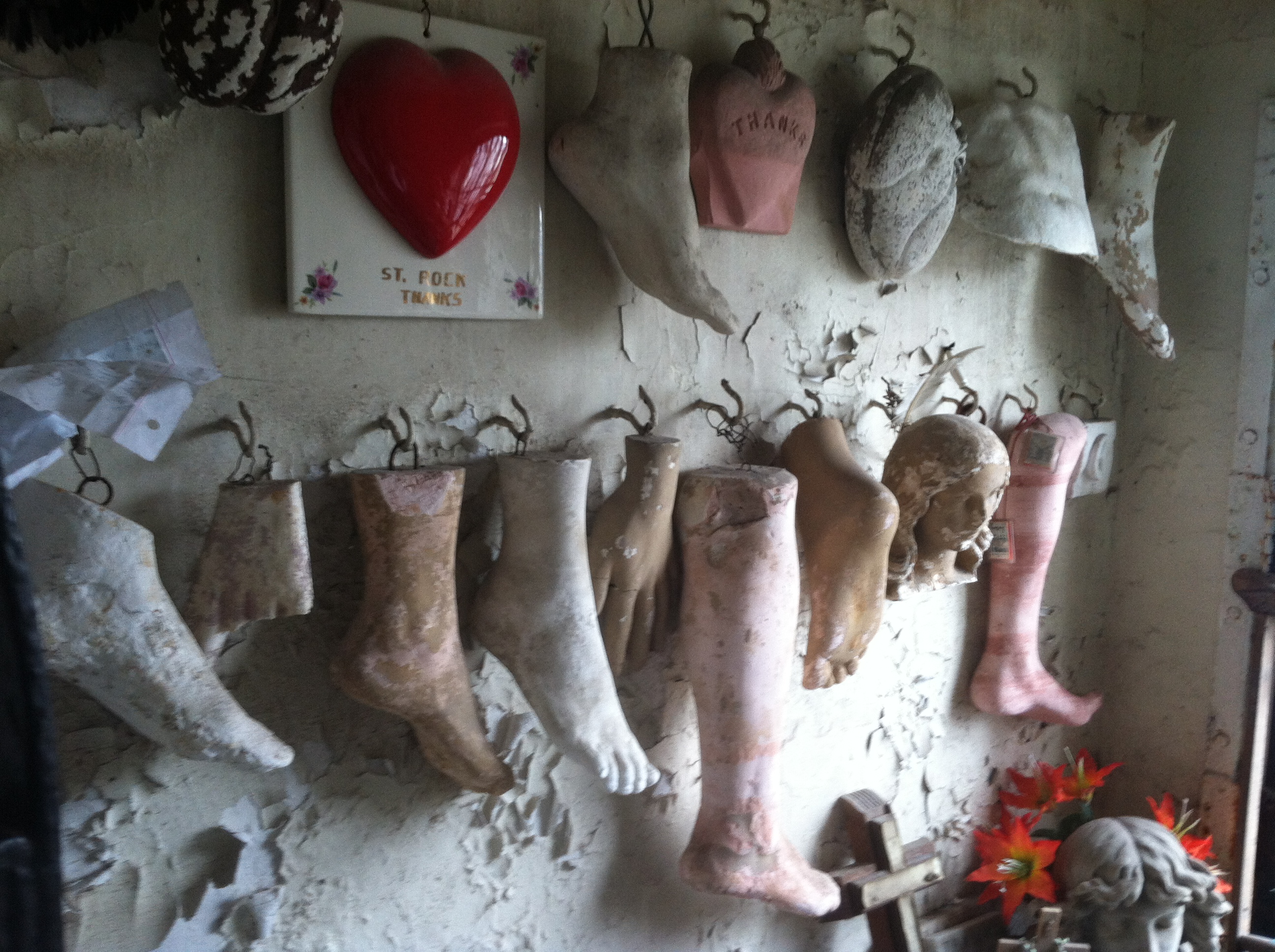 We also visited the St Roch Cemetary and Chapel, in the same general area as Bywater, but on the inland side of St Claude Avenue. The chapel is in the center of the cemetary. As offerings, people had given not only fake body parts, but also prosthetic limbs. We have to thank Lyman for this; his high school buddy had lived across the street. New Orleans never ceases to amaze me.
