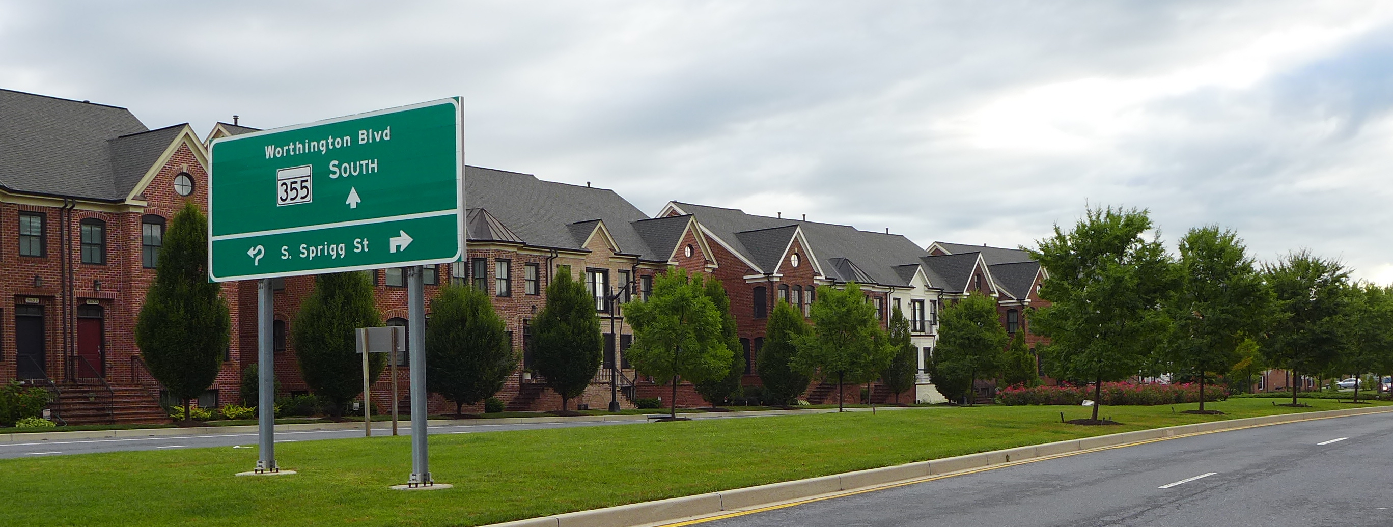 Seven miles before Frederick, you suddenly enter what Tom Constantine calls a faux-ville, the Villages of Urbana. My brother Alex’s first book was partly about this New Urbanism, criticizing these developments as faux-urbanism; housing developments claiming to be actual towns. This one was at least tastefully done. It had the state highway go right through the middle of it, with townhouses brought right to the highway.