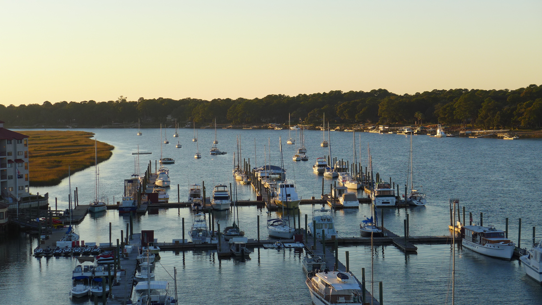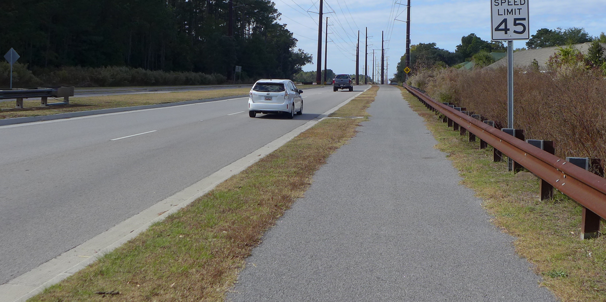Inland, before Hilton Head, the powers that be in South Carolina have invested in wide roads with bike paths. These roads pass through mostly empty woods and swamps, having the roads ready when new golf courses come. It gives a bike rider a very safe ride for about twenty miles before the bridge to Hilton Head.