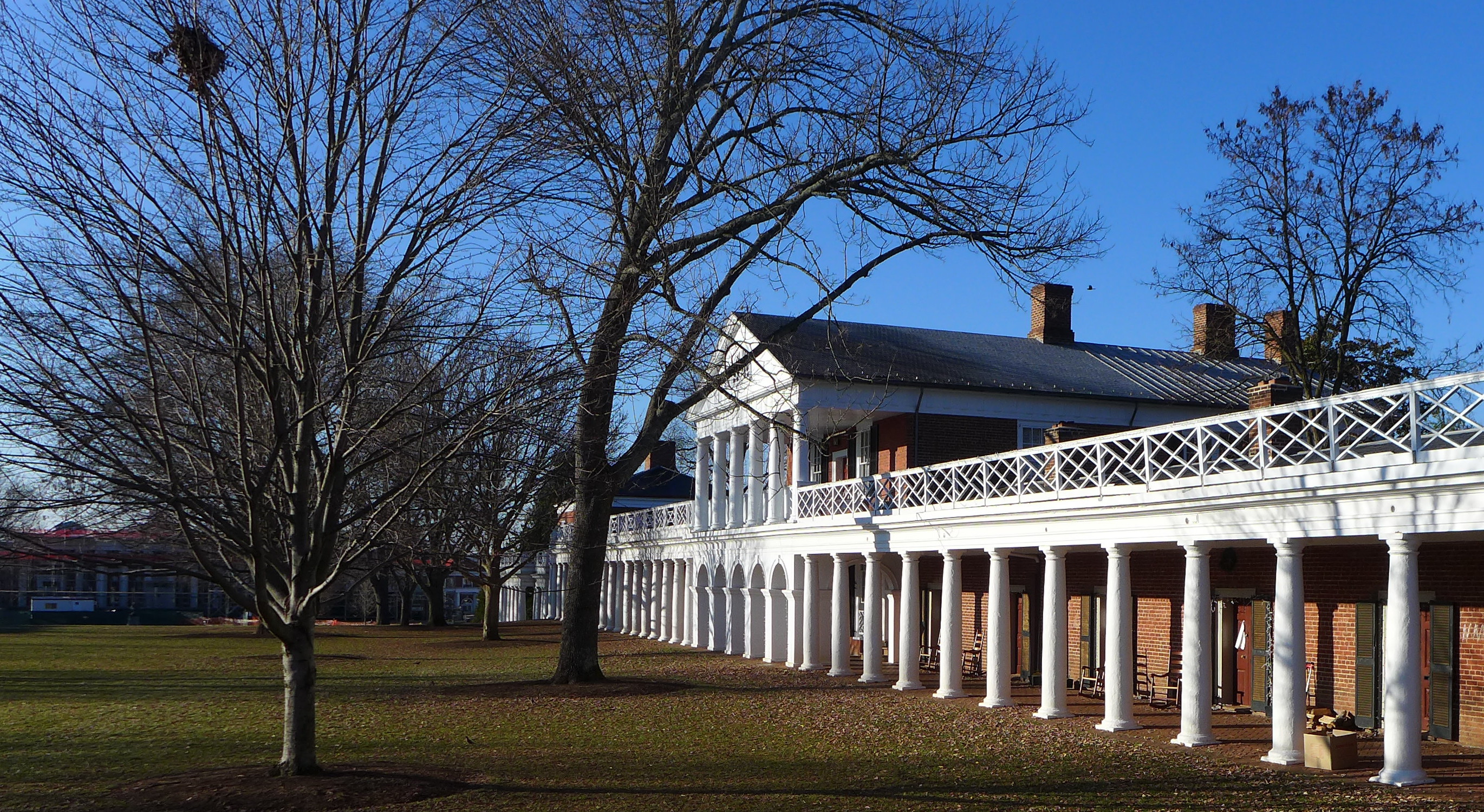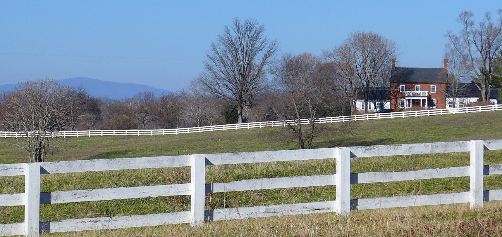 What was more interesting were the twenty miles of continuous “post and rail” wooden fences, both white and brown, that line the roads the final twenty miles from Gordonsville into Charlottesville. Never, ever did I see the more recent plastic versions that they sell at Home Depot. Somebody out here does a lot of fence painting. The “manor” houses that anchor these “farms” are not always visible from the street. We need higher taxes in this country.