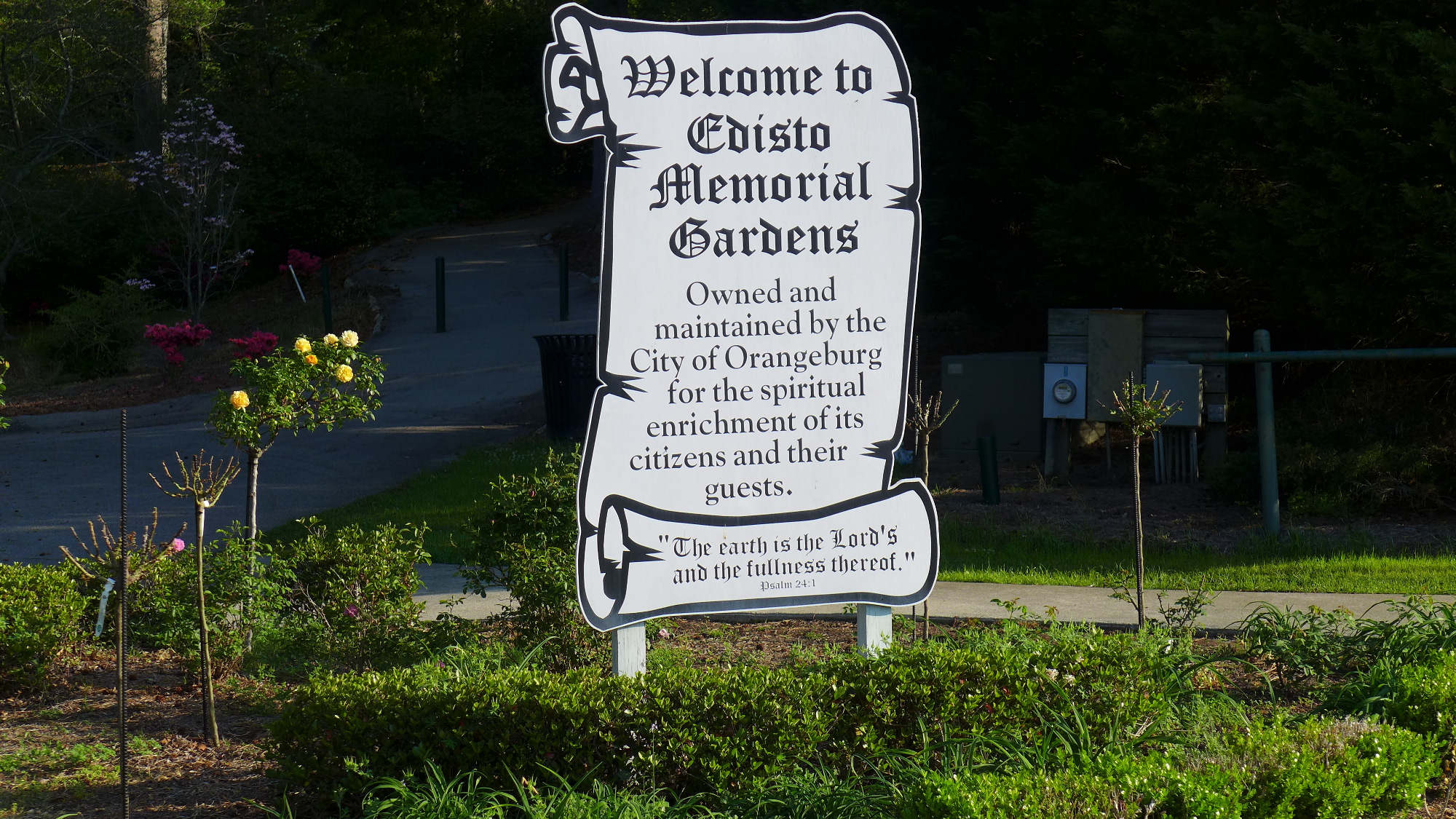 The next morning I spent about four hours bicycling around Orangeburg and its vicinity. I guess they do not see a lot of tourists here. “The Garden City” (population 13,964) has some lovely gardens along the Edisto River. I do not take too much offense that separation of church and state is apparently not taken seriously.