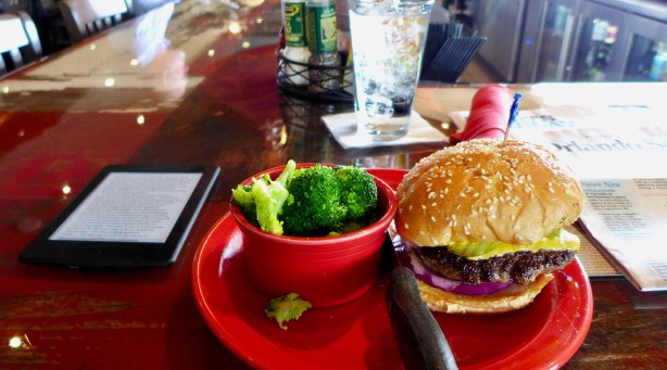 Older parts of Orlando are actually quite attractive. I got lunch at BurgerFi; hamburger and broccoli were good. I read my Kindle.