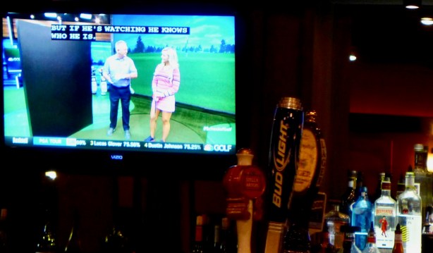 Meanwhile, the TV blared Golf Channel with some older man patronizingly showing a younger blond woman how to swing a golf club.