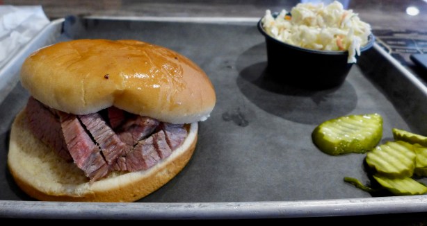 I will commit heresy and compare Florida barbecue to that of North Carolina. North Carolina barbecue is so famous that even people in Virginia hold it as their standard. I also had barbecue the next day at Johnson Barbecue in Plant City, Florida. Just like at BubbaQue’s, Johnson Barbecue (since 1954!) had lots of choices. North Carolina barbecue is great but I think it is stuck in its excellence. There are a couple places near my home that are branching out, but most places in North Carolina would consider it heresy to focus on anything other than chopped pork with vinegar sauce. Even the side dishes culturally are frozen in stone. At Johnson Barbecue in Plant City even with its old-school blue collar atmosphere it seemed more inventive. I got a beef brisket sandwich with pickles and slaw.