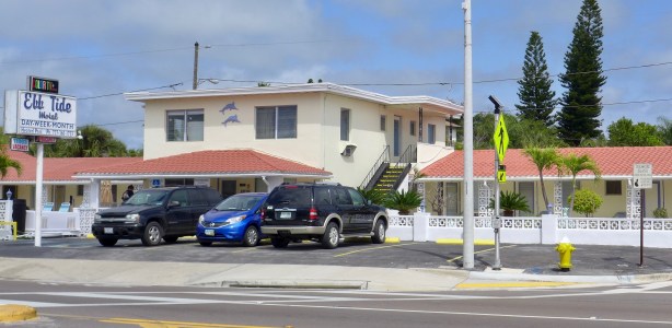 I crossed over another bridge to the barrier island, hitting the gulf beach at the community of Belleair Shore. For seventeen miles from there to St. Pete Beach I biked along the gulf highway passing by motels, condominiums, and bars. I wanted to take pictures but very little was memorable. The best I can say is that there were many small motels that looked both prosperous, old school, and family run.