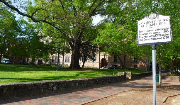 Three quarters of a mile down Franklin Street I passed McCorkle Place, where the University of North Carolina campus runs up to Franklin Street.