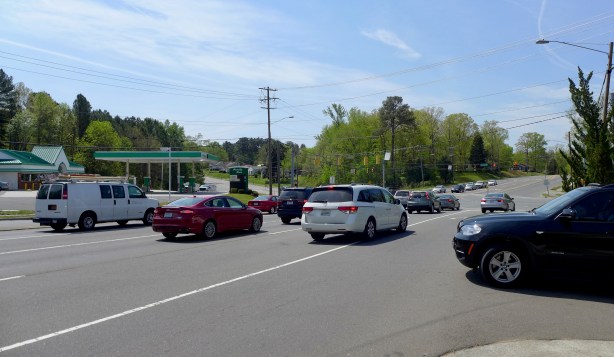 Crossing through the lot of Durham Volkswagen, I inspected lots of new model cars. I then walked facing traffic along the feeder road along 15-501. It was a more pleasant walk than it looks, in that there is almost no traffic on this road. Note the obliterated remains of a car dealership on the right of the photograph.