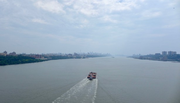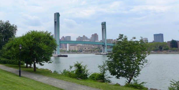 My proposed four to five day route to Albany would mostly go up the west bank of the Hudson River. This afternoon, to get to the west side of the Hudson, I would need to cross much of New York City; from the borough of Queens across the East River to Ward’s Island, then cross the Harlem River into Manhattan, then across Manhattan to the George Washington Bridge, which crosses the Hudson River into New Jersey.