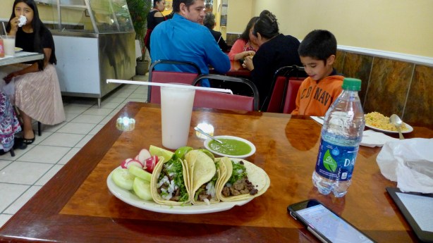 Looking for somewhere to eat lunch, one of the very few restaurants had a management and a clientele that looked entirely Mexican. I ended up sharing a table with this little guy who did not fit at his parents table behind him. I ate beef tacos and washed it down with horchata, all delicious.