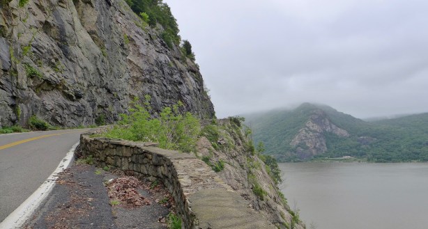 The rain had stopped for a while, so about noon I headed down the road. While the cycling on route 9W is fairly safe, I was able to get off and ride on side roads for much of the way, which made it more pleasant. I got a flat tire in the drizzle, and had to stop and fix it.