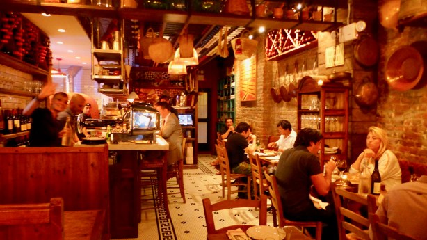 I stood around for about twenty minutes before a seat opened up at the bar. I ordered a bowl of clam chowder ($10.o0: delicious) and then an appetizer sized octopus salad($15.00: also delicious) and with the free bread and accompanying free caponata, it filled me up nicely. I sat next to a retired Delta Airlines pilot and a similarly aged guy who bragged about the number of Italian restaurants he owned back in “the city.” We all had a nice chat. As I was leaving, I pointed my phone camera back at the crowd at the bar.