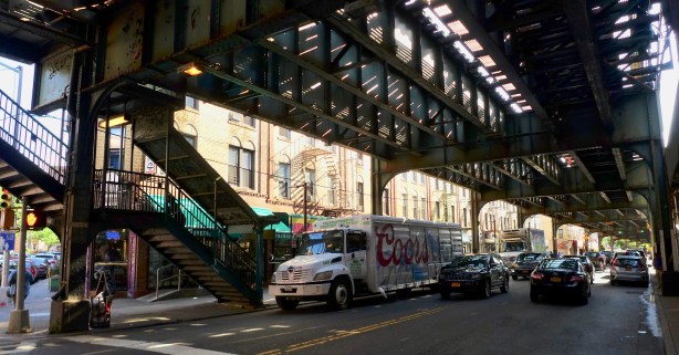 Although Manhattan is long and skinny, bisecting it through Harlem it still felt huge. There is dense city for several miles. Where in the past Harlem had a negative connotation, now it seems like a vibrant mostly African-American neighborhood. There were people hanging out on the street.