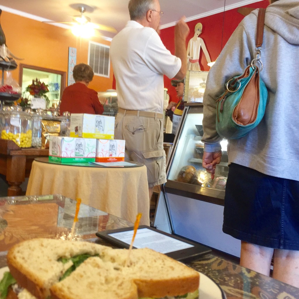 The downtown is mostly empty but it does have two or three restaurants. Southern Plenty is open just for lunch but it was quite busy, with chicken salad sandwiches and various knick-knacks as well. I sat there and read my kindle.