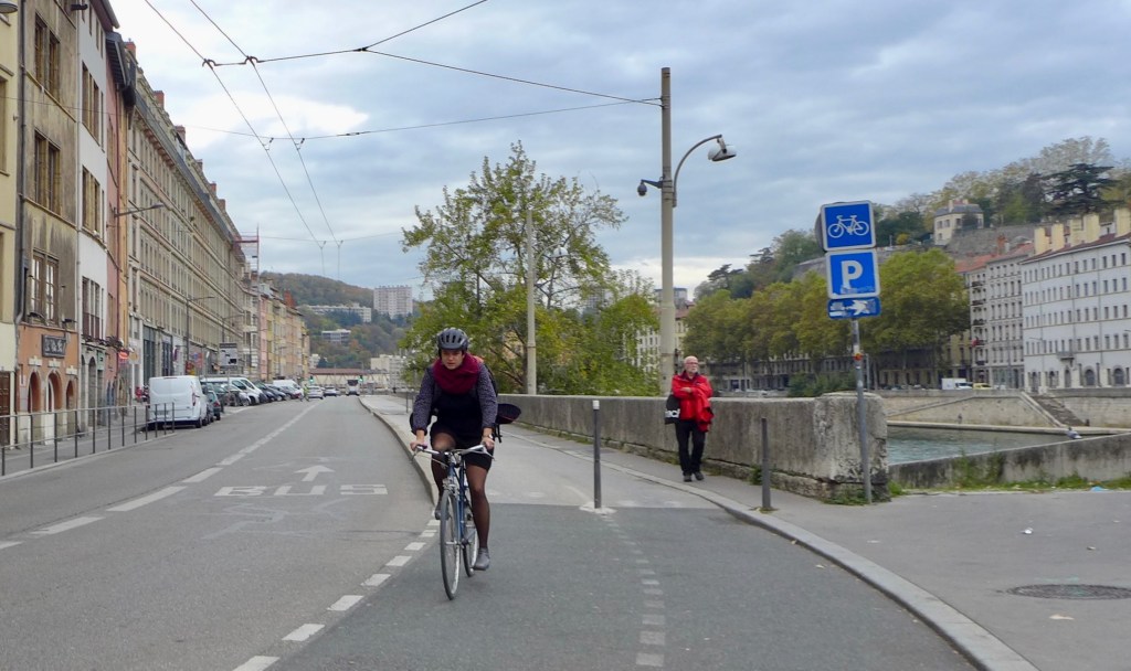 Using Google Maps we found the train station fairly easily and arrived there by bicycle. To take the bicycles on the train, we folded them in a much simpler way compared to what had been necessary for the airplane, and we each carried our bicycle on board in a nylon bag. The two hour train ride to Lyon was a breeze (at nearly 200 mph!).