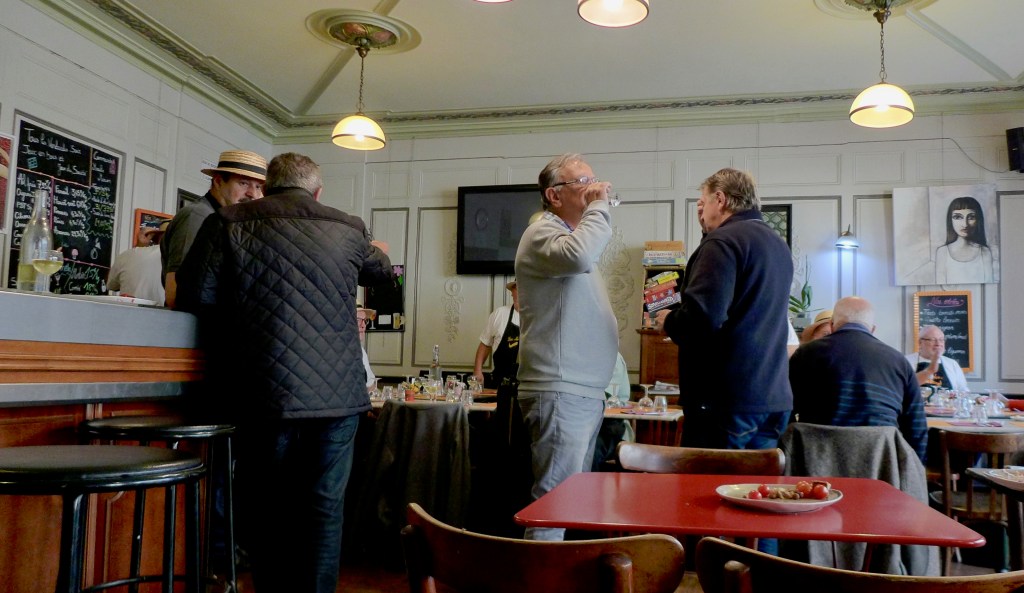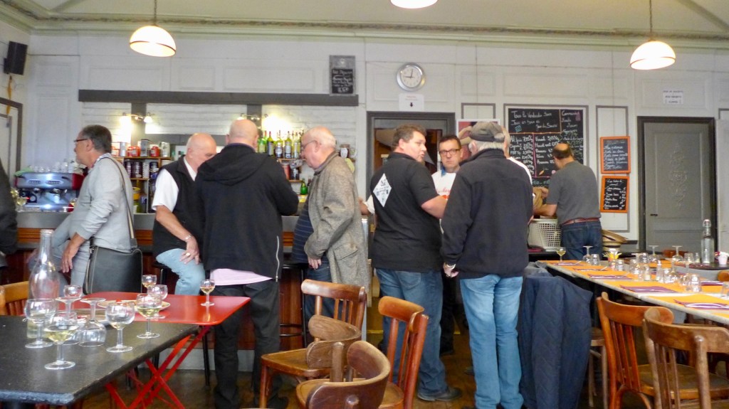 The next morning we elected to find a cheaper breakfast than the one at hotel, and went back to that same bar. At 8:30 AM on a Saturday morning it was unexpectedly crowded with men mostly about my age, drinking wine. There was clearly some kind of event going on.