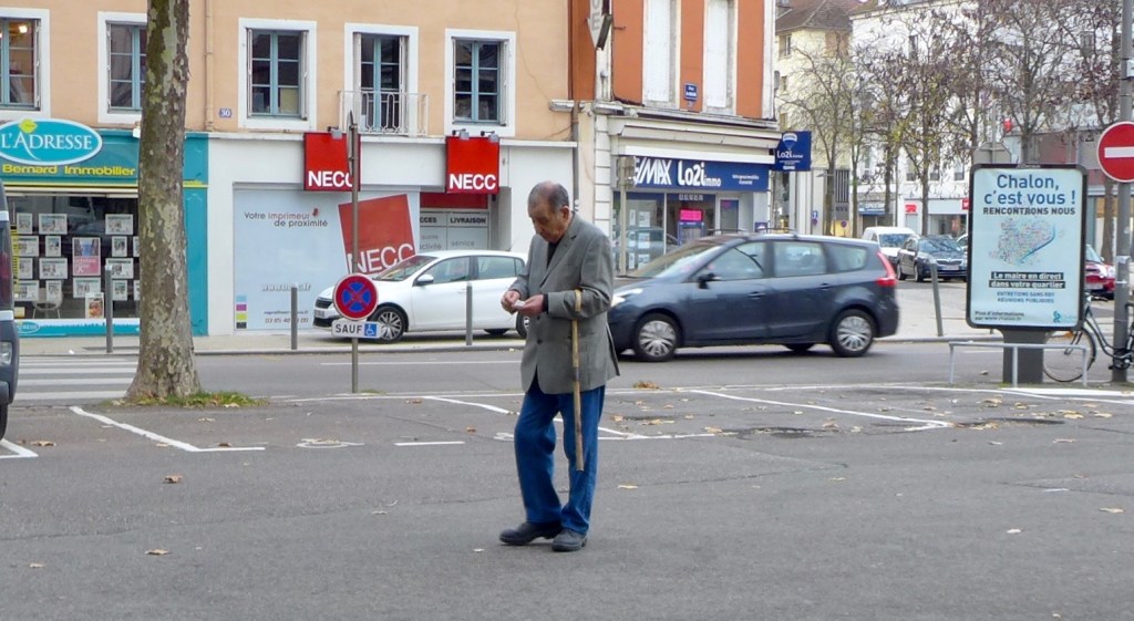 For my two regular readers named Nancy (you know who you are!) I had been planning this whole trip to photograph myself beside the sign announcing the city. But we were really cold and I was not going to stop for anything. Sorry. I did get a picture of a street in a town just before Nancy.