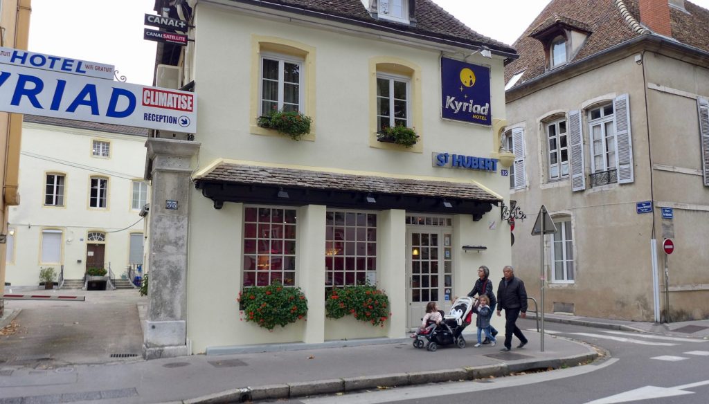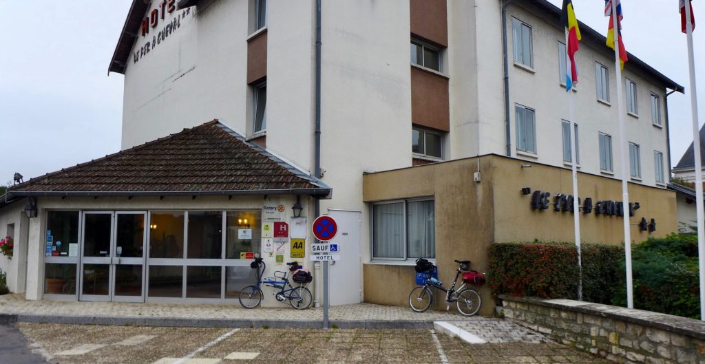 We were tired and cold when we pulled into the small town of St. Jean de Losne, the only nearby town that showed having a hotel, and only one hotel at that!