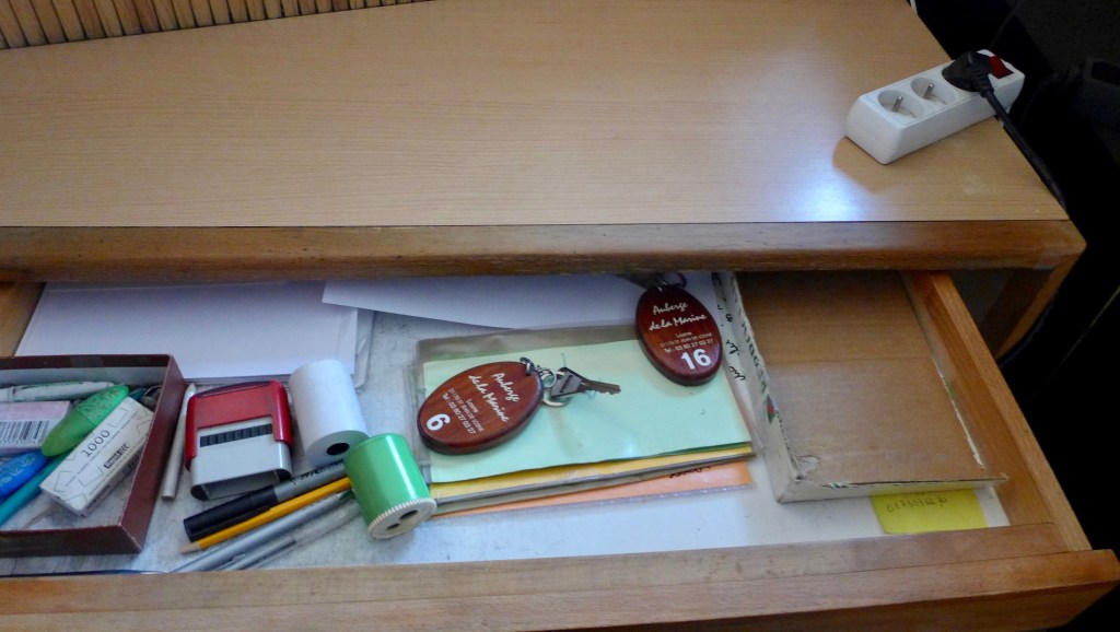 We called one of the phone numbers and got the owners on their cell phone. They offered us a room for eighty Euro, (which seemed like a lot.) We accepted, and they told us to walk behind the front desk and open the top drawer and take the key marked “6.”