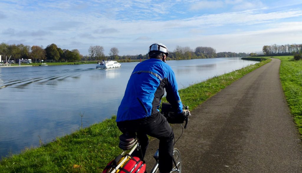 Once again, we just stumbled onto one of the most beautiful bicycle paths I have ever seen, a paved towpath along the Canal d’est. This continued for over thirty miles.