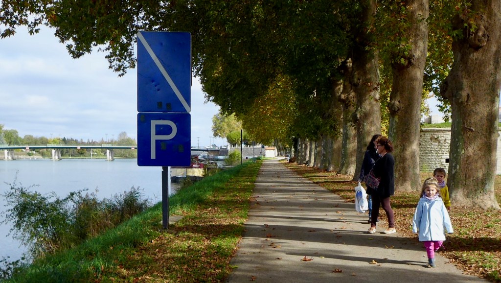While the rail-to-trail had ended there were country roads and bike paths clearly marked Voie Blue, as we biked upriver along the Saone.