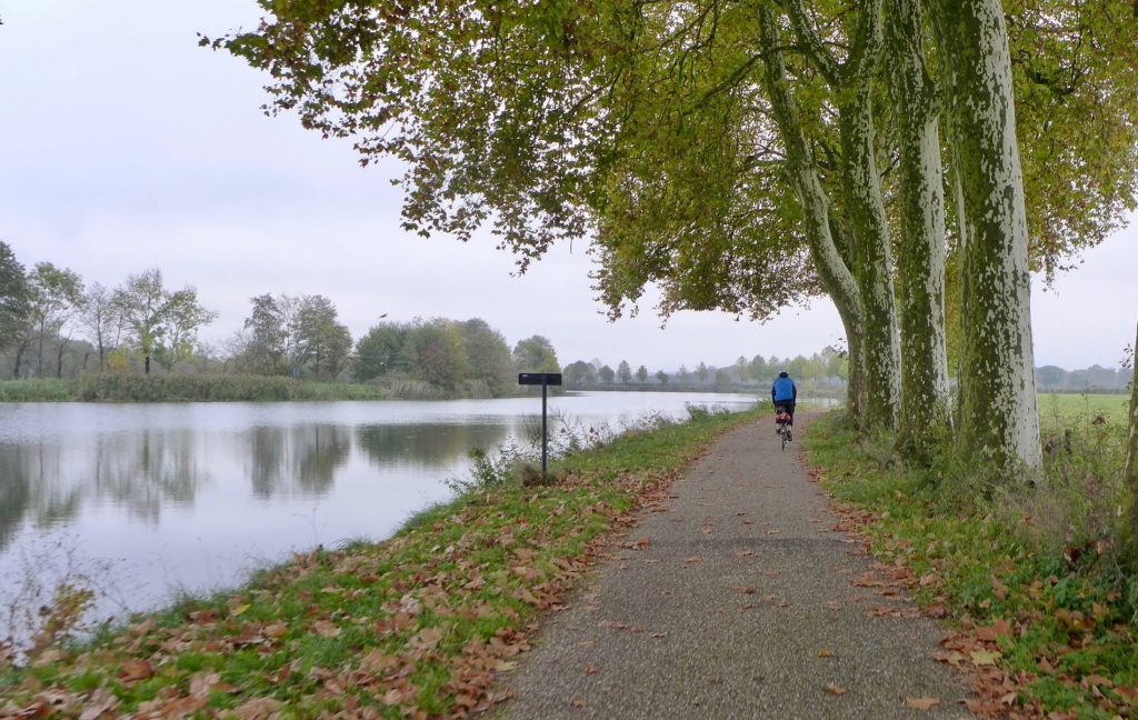 Despite all the food and wine, we had to get back on the bicycles and head down the road in a chilly drizzle. The scenery was lovely, however, as we rode alongside several canals.