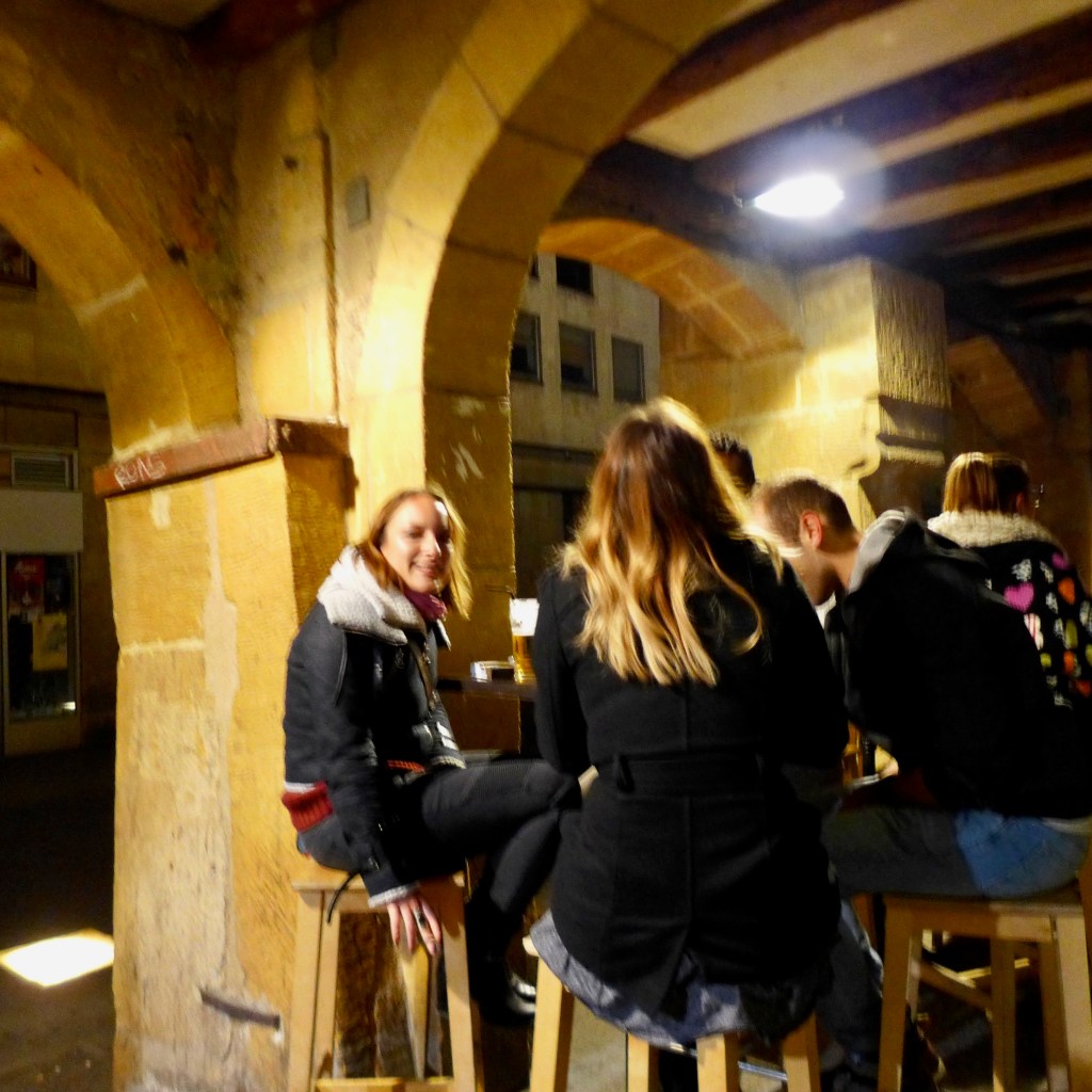 The northeastern part of France, sometimes referred to as Alsace-Lorraine, has a pervasive beer culture not present in the rest of France. There were beer halls filled with young adults spilling onto the covered sidewalks.