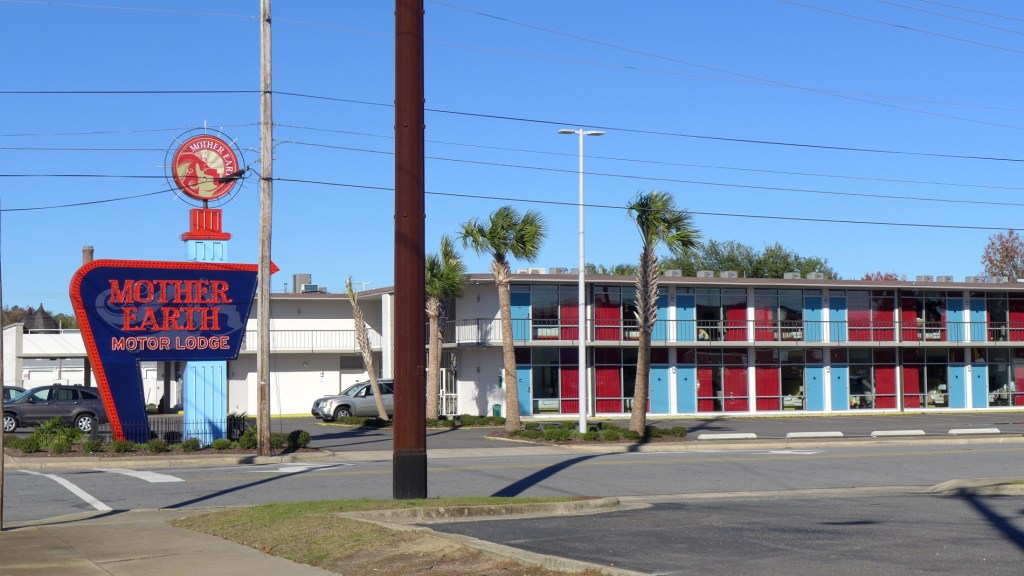 My wife Tootie’s sister Kathryn had been given a gift certificate to the restaurant Chef and the Farmer, one hundred twenty miles east of Chapel Hill, in Kinston. The three of us drove over there, ate a grand meal at the restaurant, and stayed one night at the Mother Earth Motor Lodge.
