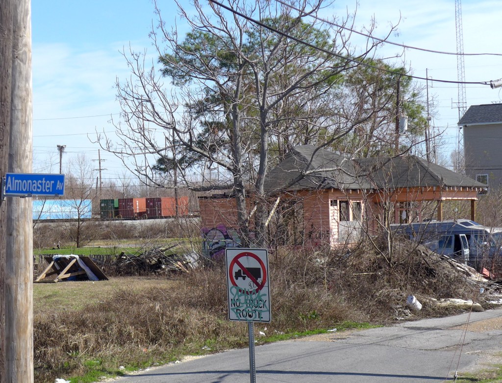Almonaster Avenue peters out underneath the Interstate 10 high rise bridge over the Industrial Canal. Google Maps showed another smaller bridge here.