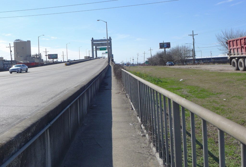 Almonaster Avenue continues for many miles the other side of the bridge, passing through partially filled-in swamps, separated from the rest of New Orleans East by railroad yards. In The Godfather this would be a good place to dump a body. It looks dangerous to bicycle but there is essentially no traffic on this four line divided highway.