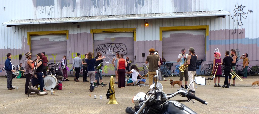 This was still Carnival season. In the Ninth Ward / Bywater some kind of brass band was assembling.