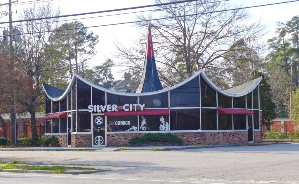 It was a pleasant atmosphere, no one bothered me, and after reading for a while I got back on the bike and threaded through miles and miles of Columbia suburbs. I had to go on major roads because all the residential streets were non-connecting. The bicycling was not that pleasant and neither was the scenery, although I did stumble on one nice piece of googie architecture.