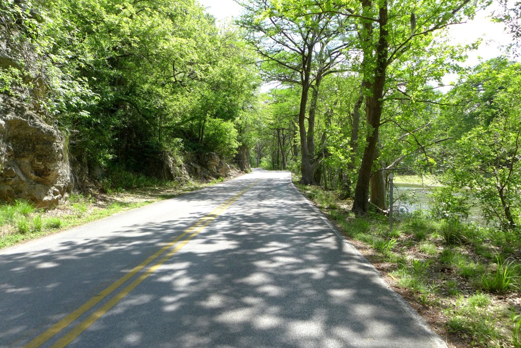 The fifteen miles of River Road north of New Braunfels is a beautiful bike ride, almost flat as it follows the Guadalupe River, with very little car traffic.