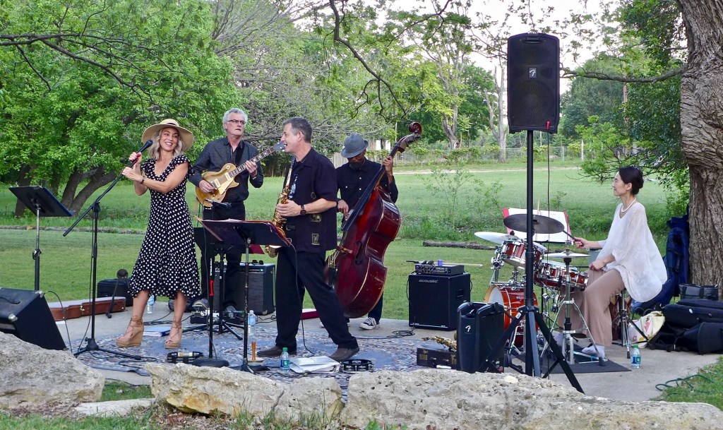 We spent the night at a motel in Blanco and had the opportunity to bike to a park in central Blanco and see some live music. The jazz band was professional and tight, the Japanese drummer fetching.