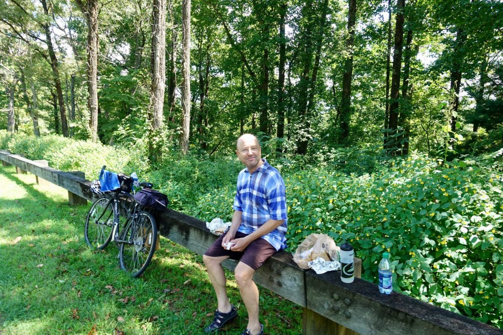 At lunchtime we could not find a picnic table so we ate while sitting on a guard rail.