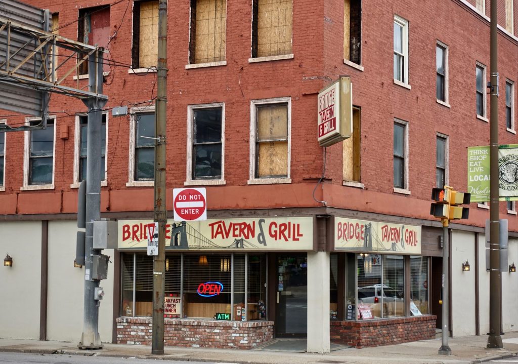 Downtown Wheeling is largely abandoned, with a few spots of life.