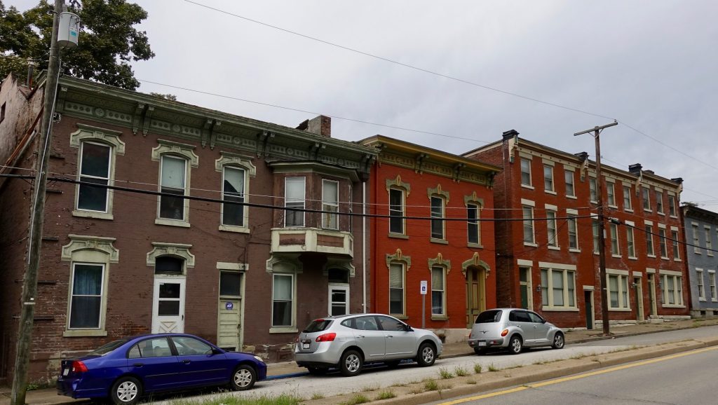 I biked around downtown a little before heading north along the Ohio River, on the West Virginia side. There were more older residential areas. In this one block these houses are stunning.