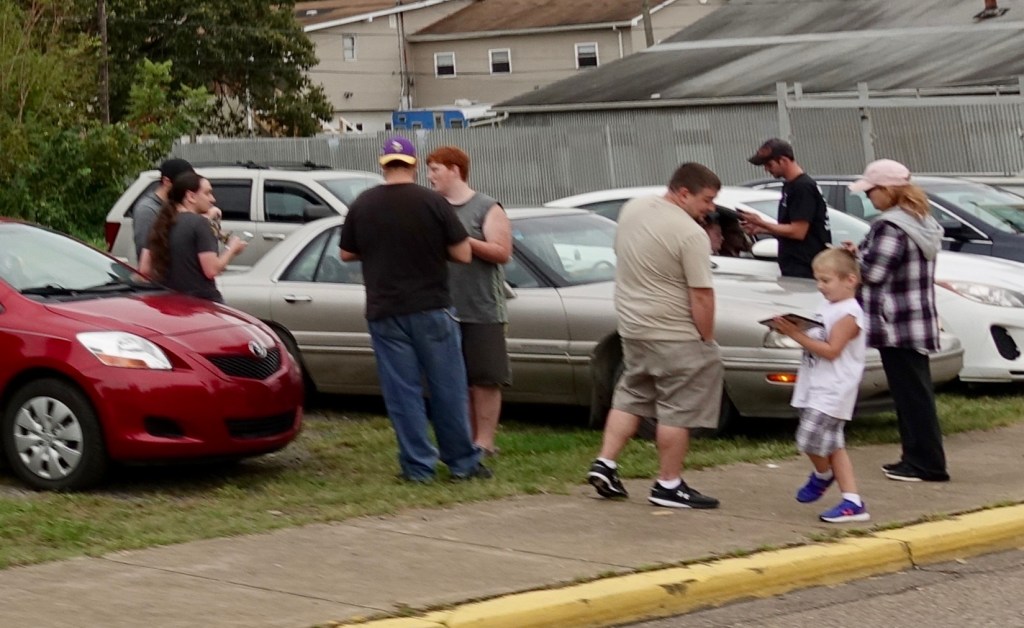 I passed through a couple of small towns. These people gathered in a Baptist church parking lot.