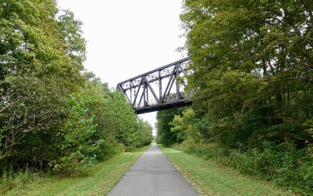 The next morning I checked out of the motel and continued my ride. My original plan had been to bike along the Ohio River. On Google Maps this morning I discovered a rail trail starting just across the river from Steubenville that extended east away from the river, straight across the foothills for 29 miles, two thirds of the way to Pittsburgh. It seemed too good to pass up. I emailed Airbnb to book a low cost place that evening in Pittsburgh.