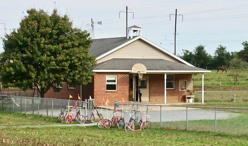We passed by an apparent Amish school. There were no cars parked here but school was in session. Everybody including the teachers apparently got there on foot or by bicycle.