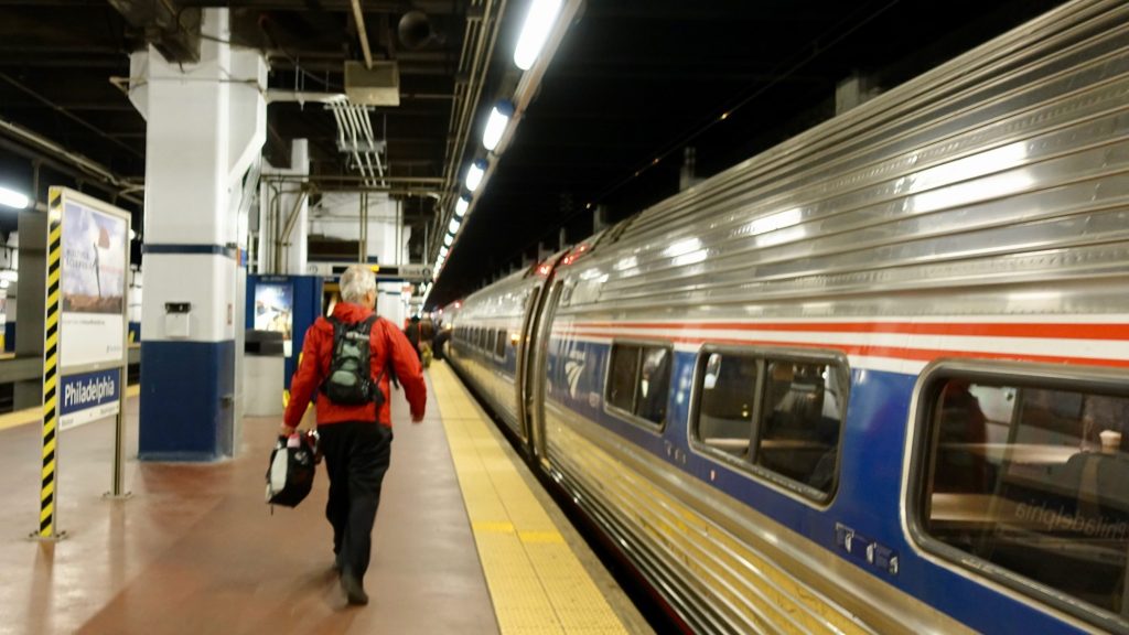The next morning we bicycled the mile or two from our Airbnb to 30th Street Station, for the Amtrak back to Baltimore. Out of about fifteen trains a day in the Northeast Corridor, only two or three allow a standard bicycle loose and unboxed. The art deco station is beautiful.
