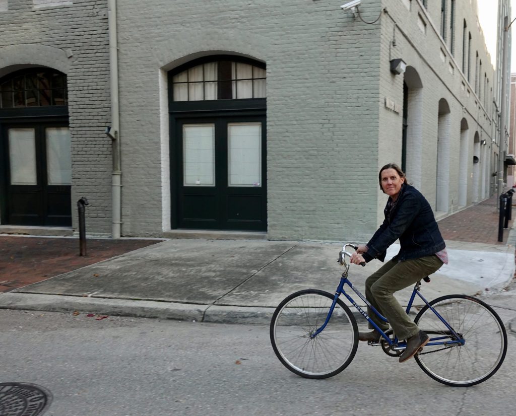 On this recent early December day Tootie and I biked from our apartment to see Bywater again, and how much it had changed. It is about five miles through solid city. We biked through Uptown, then the Warehouse District.