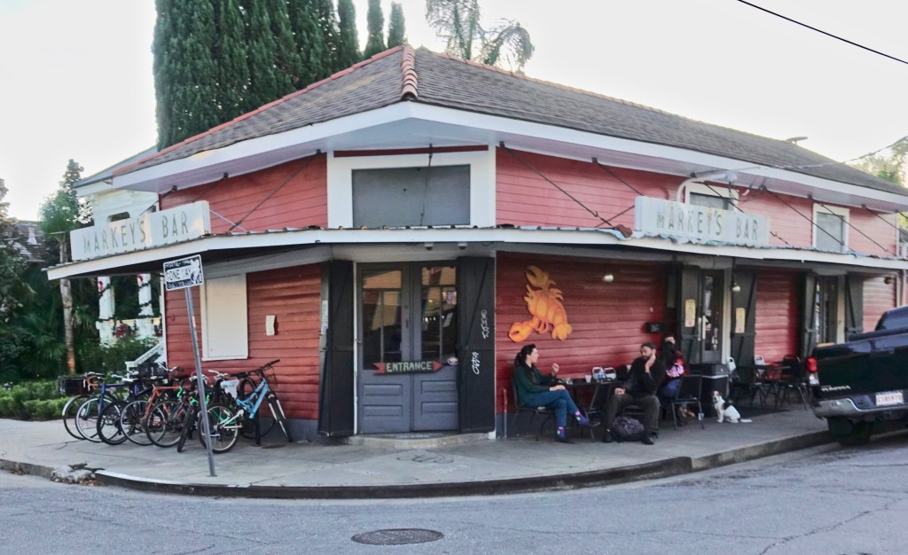 It was about cocktail hour and we headed towards one of our favorite bars in New Orleans, Bar Tonique on Rampart Street, on the edge of the French Quarter. They make their own tonic for the gin and tonic. They have an enormous selection of drinks at low prices, and a cat that sits on the bar.