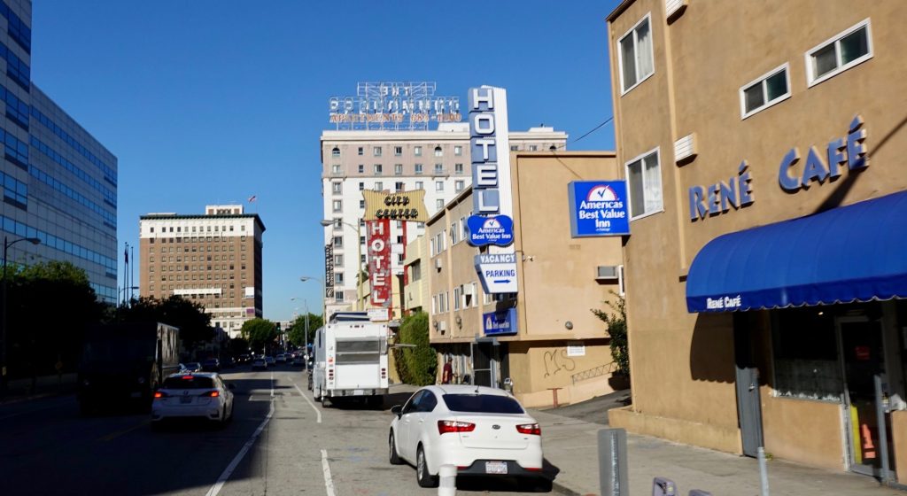 My Airbnb was on the apparently still gentrifying side of I-110 in a newer large apartment complex. I had one bedroom of a very neat and clean two bedroom apartment occupied by a twenty something guy. This ended up being totally acceptable to me and cost less than a hundred dollars including taxes. He gave me instructions to tell security at the front desk that I was a “friend” of the guy in 415. There was a nice view out of the bedroom window.